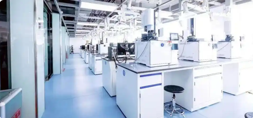 暮色漸深,廠區的“研發實驗室”依然燈火通明,銀白色管道縱橫交錯,全封閉生產線上指示燈高頻閃爍,質檢實驗室里身著白色防護服的技術員密切關注著色譜儀屏幕上的產品指標數據。