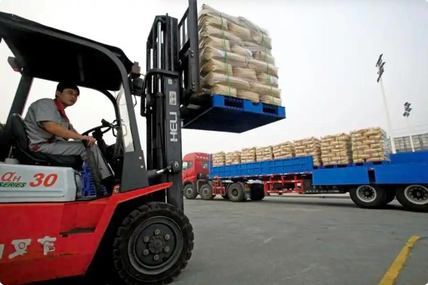 成品庫房內(nèi),一袋袋聚丙烯酰胺整齊碼放,叉車正沿著預(yù)設(shè)軌道將貨物精準(zhǔn)送入物流區(qū)。20天后,經(jīng)過檢驗(yàn)、出庫等流程,它們將按計(jì)劃發(fā)往北美、南美等國家地區(qū)。