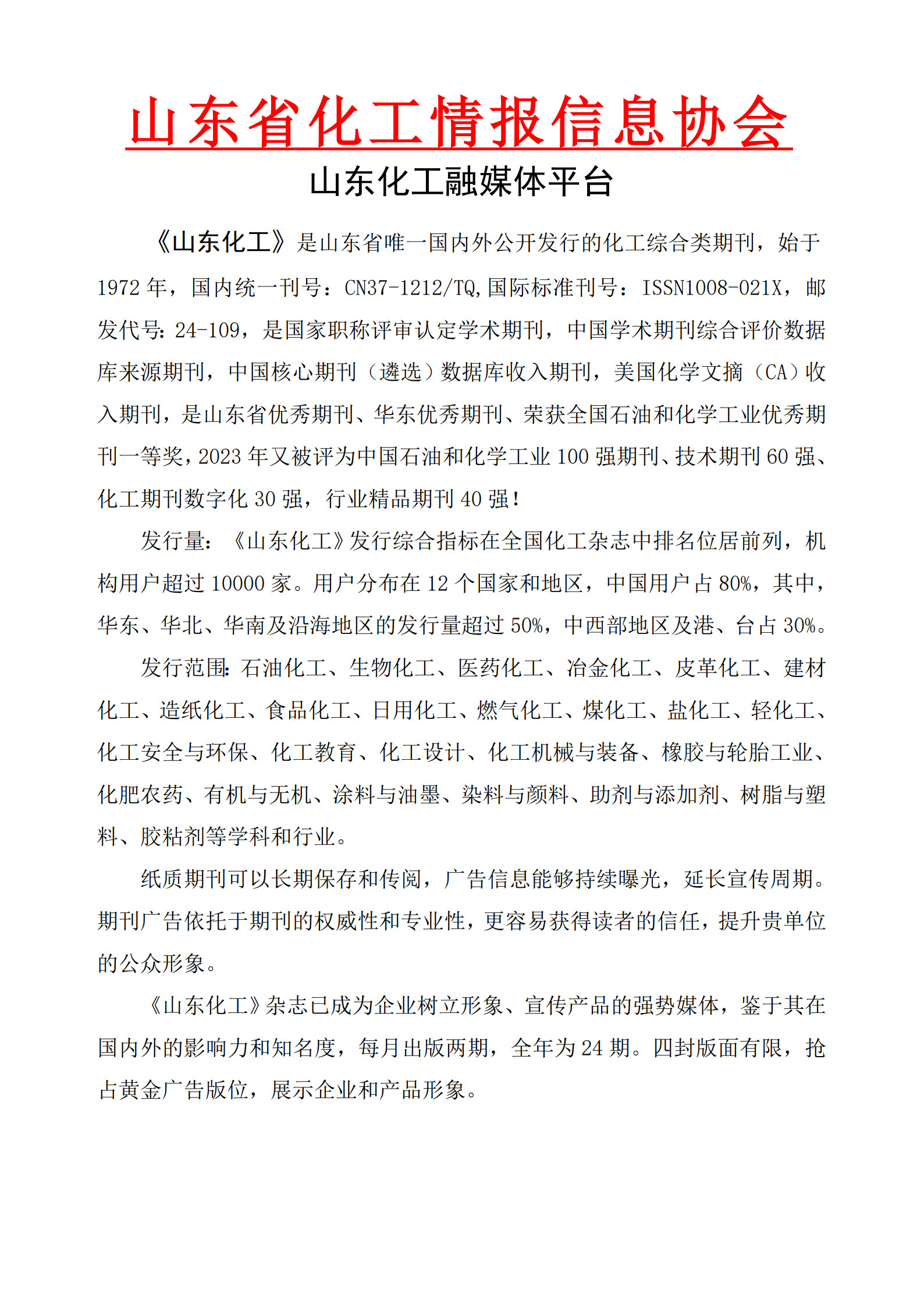 主辦單位:山東省化工情報信息協會