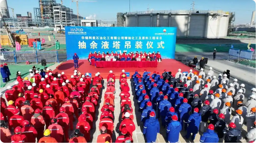 2月26日,盤錦華錦阿美精細(xì)化工及原料工程項(xiàng)目最大單體設(shè)備芳烴聯(lián)合裝置抽余液塔,在5000噸級(jí)、4000噸級(jí)兩臺(tái)國(guó)內(nèi)同類型最大吊車“聯(lián)手并肩、配合作戰(zhàn)”下,順利吊裝至既定位置,塔起燈亮,設(shè)備安裝成功。