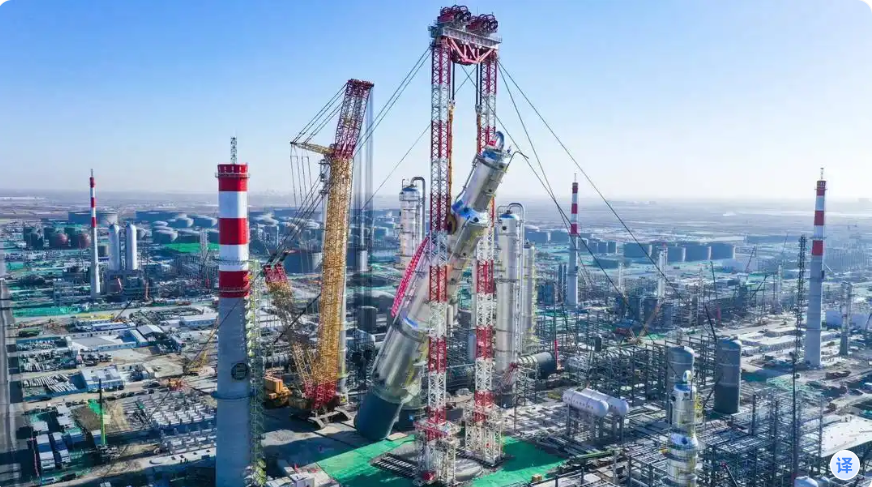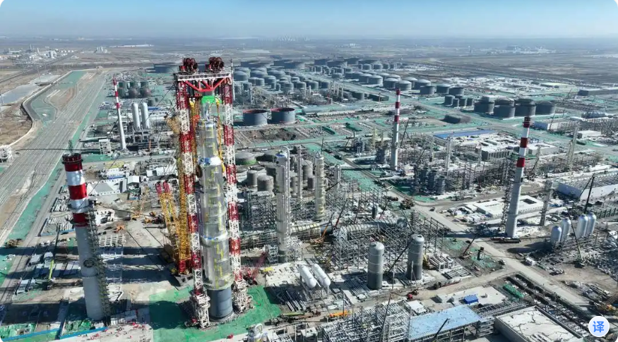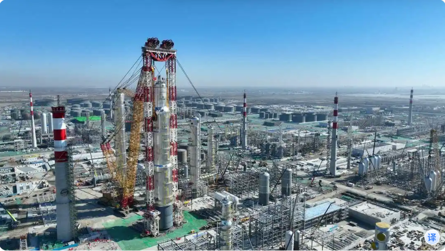![]() 抽余液塔高118米、直徑15米、設(shè)備裸重3500噸,是全球化工項(xiàng)目同類型塔器中直徑最大、高度最高、重量第二的設(shè)備,也是本項(xiàng)目最大的單體設(shè)備。